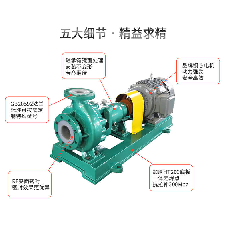 • IHF-SJ氟塑料襯里離心泵在-85℃~200℃溫度條件下長(zhǎng)期輸送任意濃度的硫酸、鹽酸、氫氟酸、硝酸、王水、強(qiáng)堿、強(qiáng)氧化劑、有機(jī)溶劑、還原劑等強(qiáng)腐蝕介質(zhì),是目前重要的耐腐蝕設(shè)備之一。