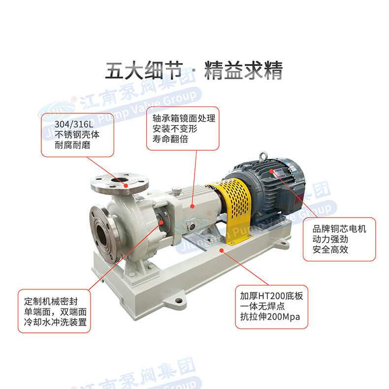 - JIH不銹鋼離心泵高效節(jié)能、抗汽蝕性能強,適用溫度范圍廣。具有運行穩(wěn)定、噪音振動低、可靠性高、壽命長等優(yōu)點,是堿液、醇類、各種有機溶劑等介質(zhì)的理想輸送設(shè)備。