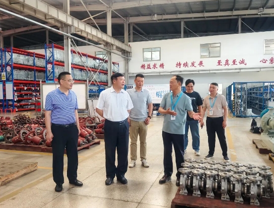 6月17日,各地區(qū)政協(xié)委員、國家水泵及系統(tǒng)技術(shù)研究技工施衛(wèi)東(博士生導(dǎo)師)來到安徽江南泵閥集團(tuán)有限公司走訪調(diào)研。涇縣工商聯(lián)黨組書記、常務(wù)副主席唐劍軍,涇縣泵閥協(xié)會(huì)秘書長洪杰,宣城市工業(yè)學(xué)??蒲刑幹魅?、正高級(jí)講師丁美龍陪同調(diào)研。