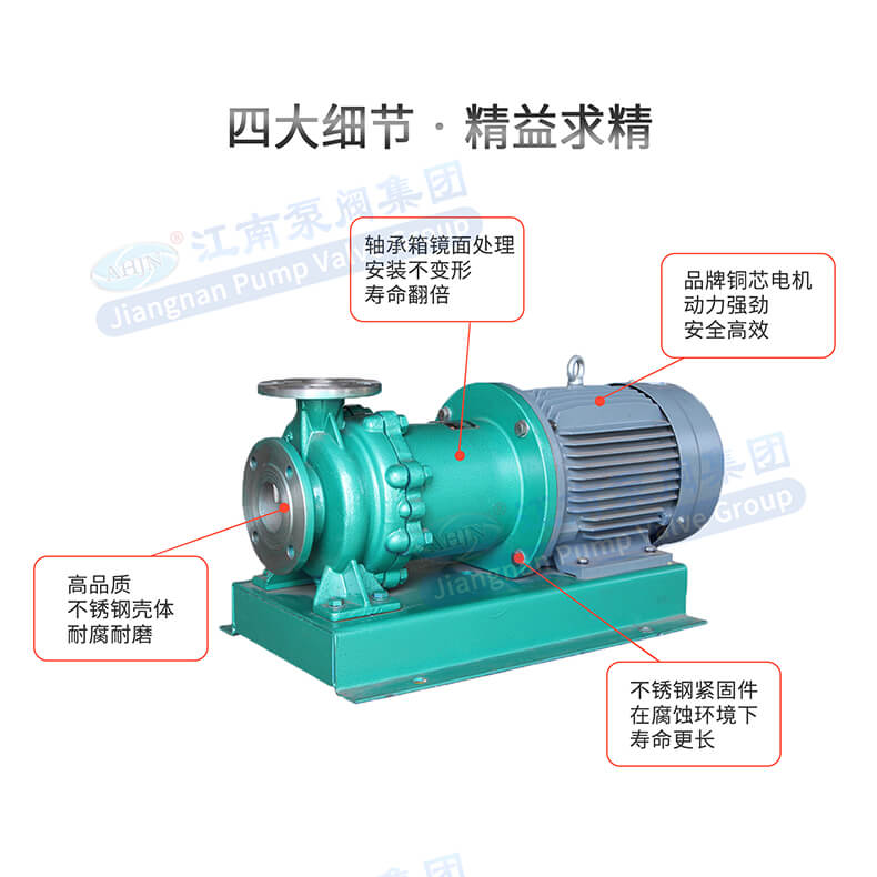 - 安徽江南泵閥制造的不銹鋼磁力泵,耐腐性強(qiáng),高效節(jié)能,耐高溫,磁性強(qiáng),全密封,無(wú)泄漏,靜音振低,可代替進(jìn)口等優(yōu)點(diǎn)。