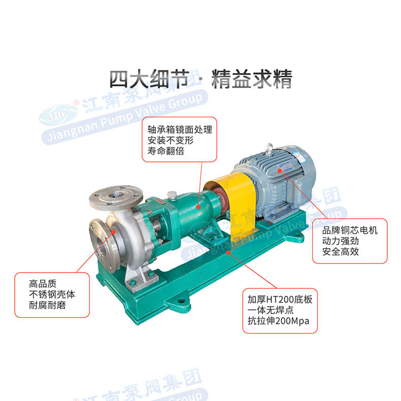 - 安徽江南泵閥制造的不銹鋼離心泵耐腐性強(qiáng),性能穩(wěn)定可靠,噪音低,振動(dòng)小,維護(hù)成本低,機(jī)械強(qiáng)度高,壽命長(zhǎng)。